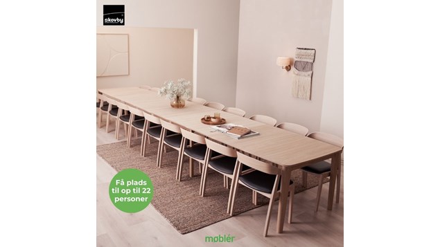 Bordet kommer med 3 tillægsplader og kan blive helt op til 391 cm langt (Bordet måler 238 cm uden tillægsplader). Derudover kan der yderligere tilkøbes 3 tillægsplader, så bordet bliver 544 cm langt med plads til 22 personer. Det indbyggede magasin kan rumme alle 6 tillægsplader, så du slipper for at skulle finde plads til dem andre steder i hjemmet.