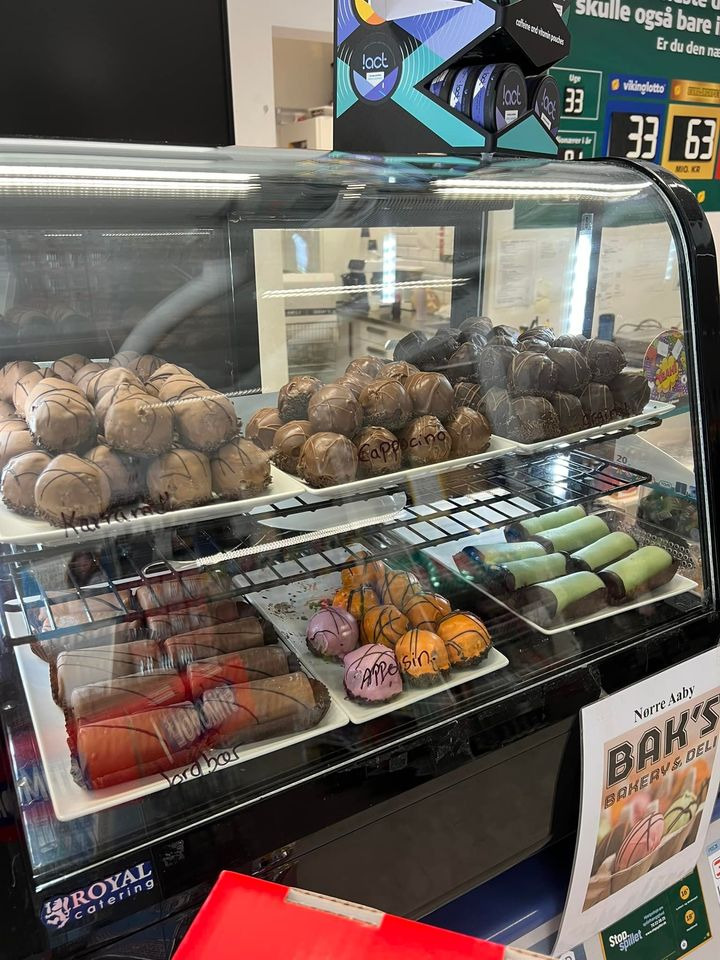 SE HER. Så er der igen fyldt op med lækre Rom kugler fra Baks. 😋😋 1 stk. 18 kr 6. Stk. 100.🤪 god weekend fra centerkiosken 🌞🌞😊