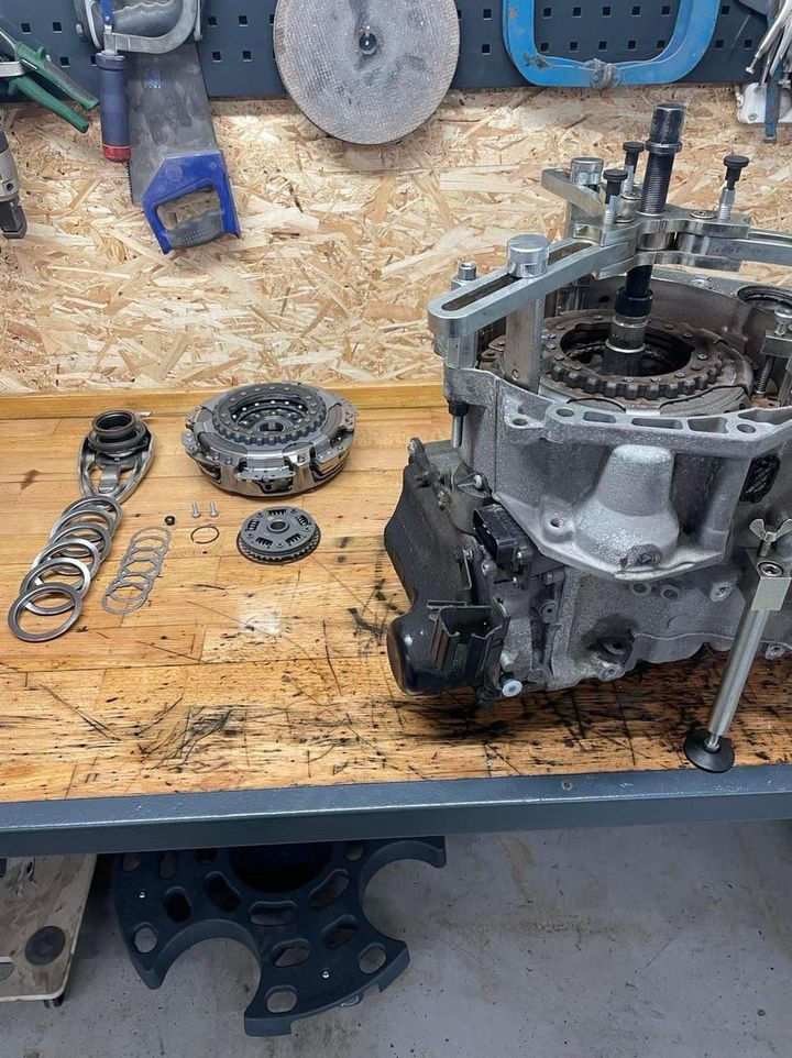 Udskiftning af tørkoblinger på DSG 7-trins gearkasse 🔧 Den er blevet shimset inden montering og derefter grundindstillet med tester inden testkørsel. Oplever du problemer med din gearkasse, så tøv...