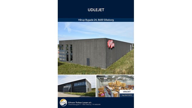 På Hårup Bygade 24 i Hårup, Silkeborg har vi hos EDC Erhverv Torben Larsen a/s netop udlejet dette store og nyere erhvervslejemål, opført i 2021 og med synlighed fra motorvejen. Lejemålet består af over 800 m2 lager/produktionslokaler med tilhørende kontor/velfærd.